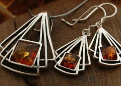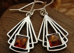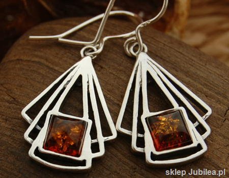 Srebrne kolczyki, w których centralnym punkcie umieszczony jest kwadratowy bursztyn, a w jego tle pięknie komponują się 3trójkąty.Ten piękny przedmiot z pewnością poprawi humor każdej kobiecie. Sama się o tym przekonaj. Warto.