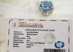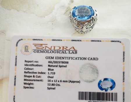 Spinel, przez wieki mylony z najcenniejszymi szafirami i zdobiący korony władców (jak słynny "Rubin Czarnego Księcia" w brytyjskich klejnotach koronnych, który w rzeczywistości jest spinelem), to dziś wybór prawdziwych znawców. Ten konkretny egzemplarz zachwyca krystalicznie czystym, lodowym błękitem, który przywodzi na myśl fragment arktycznego nieba. Jego mistrzowski owalny szlif uwalnia niezwykłą brylancję, sprawiając, że kamień iskrzy i żyje przy każdym ruchu. To klejnot o niezwykłej czystości i blasku, który nie potrzebuje niczego więcej, by zachwycać.