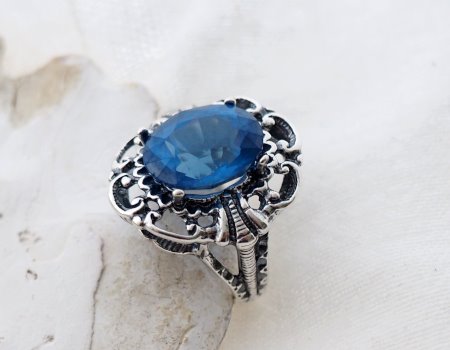Tak wyjątkowy kamień wymagał specjalnego traktowania. Srebro próby 925 zostało artystycznie oksydowane, co nadało mu szlachetny, nieco mroczny charakter w stylu vintage. Misterne zdobienia szyny pierścionka to małe dzieło sztuki, które stanowi idealne tło dla krystalicznego blasku szafiru.
